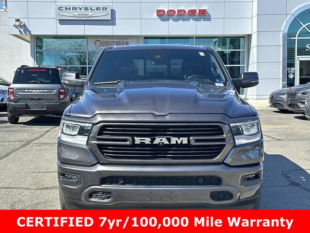 #1 Seat Foam Cushion, 10 Speakers, 12" Touchscreen Display, 2nd Row In Floor Storage Bins, 3 Rear Seat Head Restraints, 3.21 Rear Axle Ratio, 33 Gallon Fuel Tank, 4 Way Front Headrests, 4-Wheel Disc Brakes, 48V Belt Starter Generator, 4G LTE Wi-Fi Hot Spot, ABS brakes, Adaptive Cruise Control w/Stop & Go, Adjustable pedals, Advanced Safety Group, Air Conditioning, Alloy wheels, AM/FM radio: SiriusXM with 360L, Apple CarPlay, Apple CarPlay/Android Auto, Audio memory, Auto High Beam Headlamp Control, Auto-dimming door mirrors, Auto-Dimming Exterior Driver Mirror, Auto-dimming Rear-View mirror, Automatic temperature control, Black Interior Accents, Blind Spot & Cross Path Detection, Body Color Exterior Mirrors, Body Color Front Bumper, Body Color Premium Power Mirrors, Body Color Rear Bumper w/Step Pads, Brake assist, Bumpers: chrome, Chrome Exterior Mirrors, Class IV Receiver Hitch, Compass, Connected Travel & Traffic Services, Connectivity - US/Canada, Convex Wide-Angle Exterior Mirror Insert, Cruise control, Delay-off headlights, Digital Rearview Mirror, Disassociated Touchscreen Display, Driver door bin, Driver Seat Memory, Driver vanity mirror, Dual front impact airbags, Dual front side impact airbags, Electric Shift-On-Demand Transfer Case, Electronic Stability Control, Exterior Mirrors Courtesy Lamps, Exterior Mirrors w/Heating Element, Exterior Mirrors w/Memory, Exterior Mirrors w/Supplemental Signals, Foam Bottle Insert (Door Trim Panel), For Details, Visit DriveUconnect.com, For More Info, Call 800-643-2112, Front anti-roll bar, Front Center Armrest w/Storage, Front Door Accent Lighting, Front dual zone A/C, Front fog lights, Front LED Fog Lamps, Front reading lights, Front Seat Back Map Pockets, Front wheel independent suspension, Fully automatic headlights, Garage door transmitter, Global Telematics Box Module (TBM), Google Android Auto, GPS Antenna Input, GPS Navigation, Grille Surround 3 Body Color Tex 2 Black, harman/kardon 19 Speaker Premium Sound, HD Radio, Heads-Up Display, Heated door mirrors, Heated Front Seats, Heated front seats, Heated Steering Wheel, Heated steering wheel, Illuminated entry, Integrated Center Stack Radio, Integrated Voice Command w/Bluetooth, Lane Keep Assist, Laramie Level B Equipment Group, Leather steering wheel, Leather Trim 40/20/40 Bench Seat, LED CHMSL Lamp, LED Reflector Headlamps, Low tire pressure warning, Manufacturer's Statement of Origin, Memory seat, MOPAR Front & Rear Rubber Floor Mats, Navigation System, Occupant sensing airbag, Outside temperature display, Overhead airbag, Overhead console, Panic alarm, Parallel & Perp Park Assist w/Stop, ParkSense Front/Rear Park Assist w/Stop (DISC), ParkView Rear Back-Up Camera, Passenger door bin, Passenger vanity mirror, Pedal memory, Pedestrian Emergency Braking, Power 2-Way Driver Lumbar Adjust, Power 2-Way Passenger Lumbar Adjust, Power 8-Way Driver & Passenger Seats, Power door mirrors, Power driver seat, Power passenger seat, Power steering, Power windows, Power-Folding Mirrors, Quick Order Package 27H Laramie, Radio data system, Radio: Uconnect 5 Nav w/12.0" Display, Radio: Uconnect 5 Nav w/8.4" Display, Rain Sensitive Windshield Wipers, RAM Grille Badge - Chrome, Rear 60/40 Folding Seat, Rear anti-roll bar, Rear Door Accent Lighting, Rear Power Sliding Window, Rear seat center armrest, Rear step bumper, Rear Underseat Compartment Storage, Rear Wheelhouse Liners, Rear Window Defroster, Remote keyless entry, Remote Tailgate Release, Security system, SiriusXM Radio Service, SiriusXM w/360L, Split folding rear seat, Sport Appearance Package, Sport Decal, Sport Performance Hood, Steering wheel mounted audio controls, Surround View Camera System, Tachometer, Tailgate Ajar Warning Lamp, Technology Group, Telescoping steering wheel, Tilt steering wheel, Traction control, Trailer Brake Control, Trip computer, Turn signal indicator mirrors, USB Host Flip, Variably intermitte