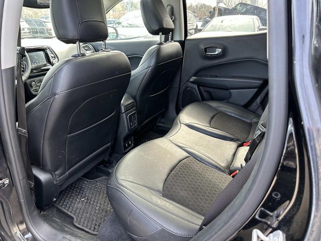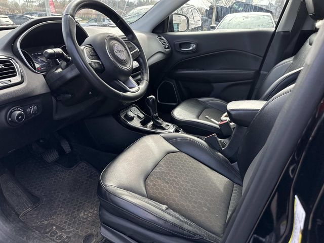 4WD, 4WD, 4-Wheel Disc Brakes, 6 Speakers, ABS brakes, Air Conditioning, All-Season Floor Mats, Alloy wheels, Altitude Special Edition, AM/FM radio: SiriusXM, Anti-whiplash front head restraints, Automatic temperature control, Black 4x4 Tailgate Badge, Black Day Light Opening Moldings, Black Grille w/Black Rings, Black Roof, Brake assist, Bright Exhaust Tip, Bumpers: body-color, Cold Weather Group, Compass, Cruise control, Delay-off headlights, Driver door bin, Driver vanity mirror, Dual front impact airbags, Dual front side impact airbags, Electronic Stability Control, Four wheel independent suspension, Front anti-roll bar, Front Bucket Seats, Front Center Armrest w/Storage, Front dual zone A/C, Front fog lights, Front reading lights, Fully automatic headlights, Gloss Black Compass Badge, Gloss Black Fog Lamp Bezels, Gloss Black Jeep Badge, Gloss Black Lower Rear Fascia Valance, Heated door mirrors, Heated Front Seats, Heated Steering Wheel, Illuminated entry, Knee airbag, Low tire pressure warning, Occupant sensing airbag, Outside temperature display, Overhead airbag, Overhead console, Panic alarm, ParkView Rear Back-Up Camera, Passenger door bin, Passenger vanity mirror, Piano Black Interior Accents, Power door mirrors, Power Front/Fixed Rear Full Sunroof, Power steering, Power windows, Premium Cloth/Vinyl Bucket Seats, Quick Order Package 2GB Altitude, Radio: Uconnect 4 w/7" Display, Rear anti-roll bar, Rear seat center armrest, Rear window defroster, Rear window wiper, Remote keyless entry, Reversible Carpet/Vinyl Cargo Mat, Roof rack: rails only, Split folding rear seat, Spoiler, Steering wheel mounted audio controls, Tachometer, Telescoping steering wheel, Tilt steering wheel, Traction control, Trip computer, Variably intermittent wipers, Wheels: 17" x 7.0" Silver Painted Aluminum, Wheels: 18" x 7.0" Black Aluminum, Windshield Wiper De-Icer.