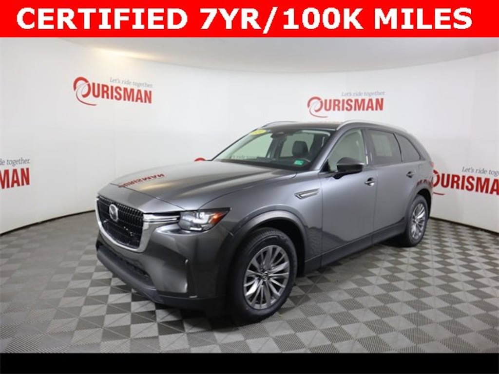 Certified. Machine Gray Metallic 2024 Mazda CX-90 3.3 Turbo Preferred Plus AWD 8-Speed Automatic I6 Turbo CARFAX One-Owner. CERTIFIED 7 YEAR/ 100,000 MILE WARRANTY.