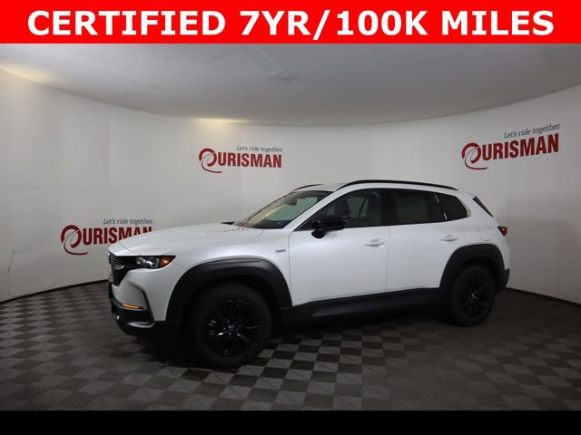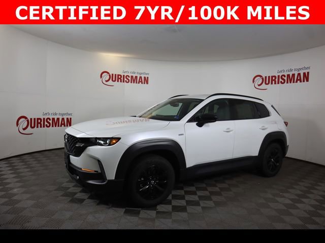 Certified. wind chill pearl 2025 Mazda CX-50 Hybrid Premium AWD CVT 2.5L 4-Cylinder CARFAX One-Owner. Clean CARFAX. CERTIFIED 7 YEAR/ 100,000 MILE WARRANTY.