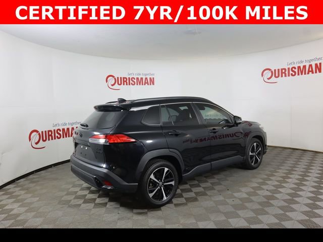 Certified. Black 2023 Toyota Corolla Cross Hybrid XSE AWD eCVT 2.0L I4 PDI Hybrid DOHC 16V LEV3-SULEV30 150hp CARFAX One-Owner. Clean CARFAX. CERTIFIED 7 YEAR/ 100,000 MILE WARRANTY.